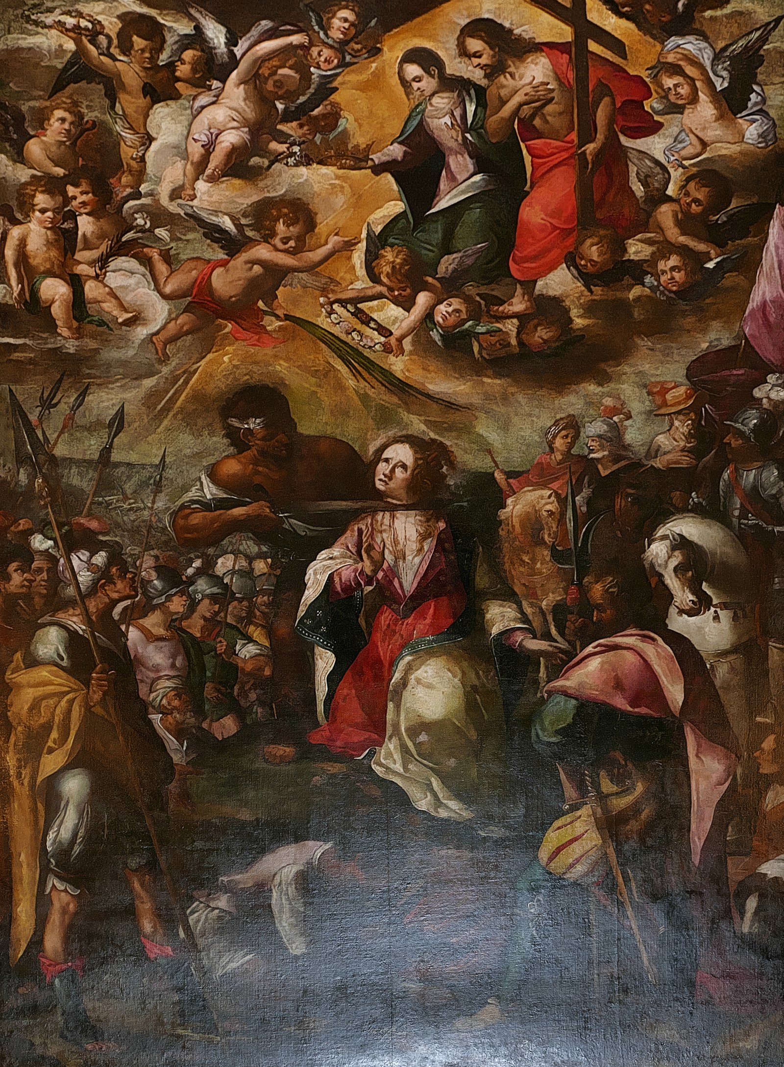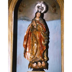En los muros de las naves se disponen otras esculturas y lienzos. Se puede destacar una talla de la Inmaculada del siglo XVIII que preside un retablo de estuco y estilo neoclásico. También nos podemos encontrar con algunas tallas del siglo XX, como el Sagrado Corazón que preside un retablo de estilo neobarroco. Entre los lienzos, encontramos varias copias de originales de Murillo y algunos otros barrocos, como el "Martirio de Santa Lucía" (Francisco Varela, c. 1637), la "Anunciación" o los "Desposorios de la Virgen". De la misma época se encuentran representaciones de varios santos, como San Lorenzo, Santa Inés o San Sebastián, y una interesante "Virgen de Guadalupe", copia del original mexicano realizada por Antonio Torres en 1740.