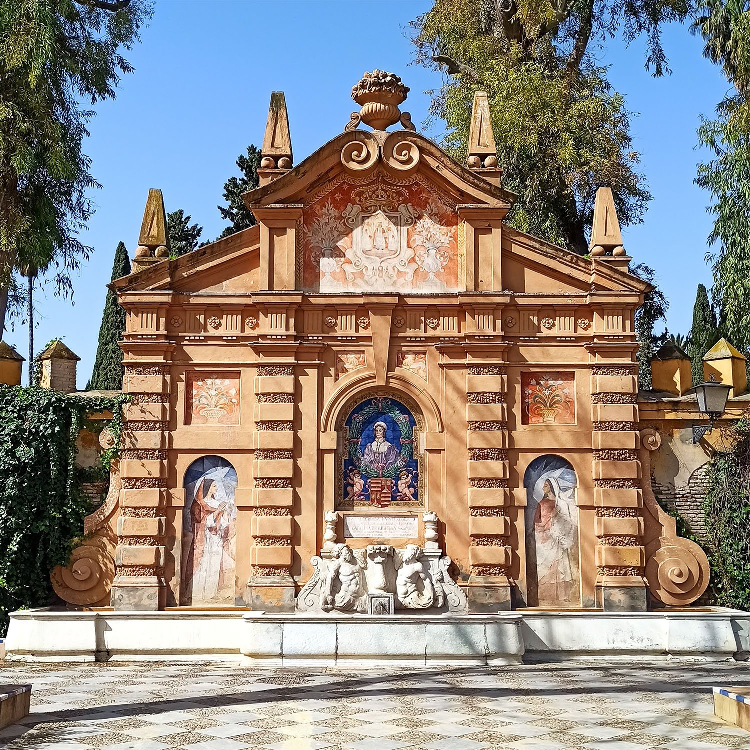 El actual paseo de Catalina de Ribera tiene su origen remoto en la cesión, en 1862, de parte de la Huerta del Retiro del Alcázar. Ese nuevo espacio público, que venía a atenuar la estrechez de la trama urbana de los barrios colindantes, no contaba aún con una ordenación especial. A fines del siglo XIX se acometió un primer proyecto de ajardinamiento y amueblamiento del denominado en esos momentos «Paseo de los Lutos» y, en 1920, con motivo de las intervenciones realizadas con vistas a la Exposición Iberoamericana, el arquitecto Juan Talavera y Heredia, formaliza las trazas conservadas en la actualidad.