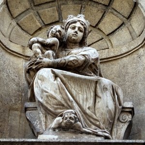En el centro de la plaza de la Magdalena se ubica una fuente de mármol desde 1844, coronada por una escultura del siglo XVIII que representa a la musa Calíope. La fuente está formada por un gran vaso poligonal, en cuyo centro se ubica un vástago-fuste dividido en dos cuerpos por un segundo vaso, esta vez circular.