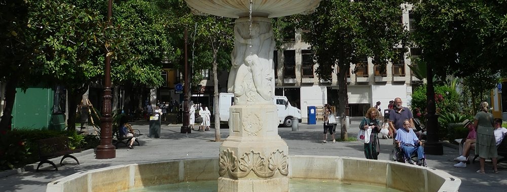 La plaza en la que se ubica la fuente estuvo ocupada por la primitiva parroquia de la Magdalena, que hoy se encuentra unos metros más al oeste. Esta iglesia fue derribada en 1810, durante la ocupación francesa de la ciudad. Tras la expulsión de los franceses, se intentó la reconstrucción del templo, pero finalmente se optó por abrir una plaza en su lugar, momento en el que se instaló la fuente.
