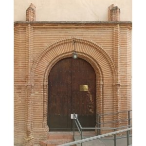 En el interior, la nave se cubre por bóveda de cañón con lunetos y arcos fajones. Unas intrincadas yeserías decoran la base de los arcos fajones, el centro de las bóvedas y el espacio semicircular bajo los lunetos. En esta zona las yeserías enmarcan las ventanas que se abren hacia la calle en el lado del Evangelio y una serie de lienzos provenientes del antiguo convento de Santa Clara en el lado de la Epístola.